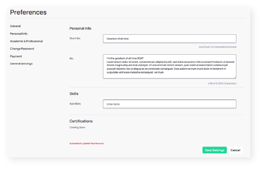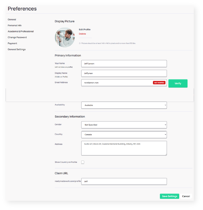 Click on “Preferences” to tidy up your public profile. Remember, the more details you have, the more trust you’ll build when working with clients. So be sure to put your best foot forward.