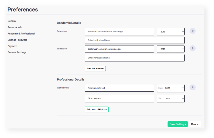 Highlight your expertise by adding academic and experiential details. This gives clients a sense of your skills and experience. 🎓💼
